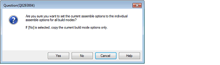 Select an assembler source file on the project tree and select the [Build Settings] tab on the Property panel. In the [Build] category, if you select [Yes] on the [Set individual assemble option] property, the Message Dialog Box is displayed.