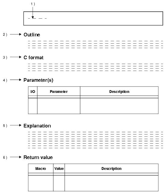 The following explains the service calls supported by the RI600PX, in the format shown below.