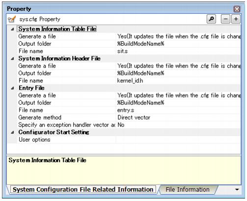 Figure 2-3 Property Panel: [System Configuration File Related Information] Tab