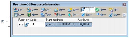 Remark Double-clicking an extended service call routine information cell (such as Function Code or Start Address) displays the source file of the extended service call routine in the Editor panel and moves the caret to the relevant location.