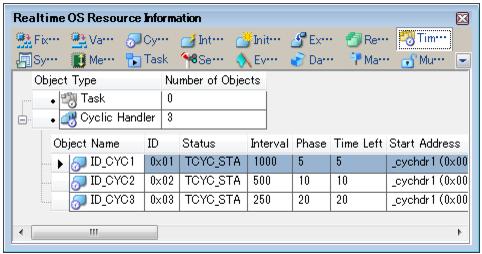 Remark Double-clicking a cyclic handler information cell (such as Cyclic Handler Name or ID) displays the source file of the cyclic handler in the Editor panel and moves the caret to the relevant location.