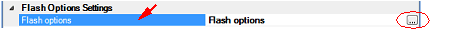 To configure options, specify the corresponding items via the Flash Options Setting dialog box, that is opened by clicking the [...] button appears at the right of the field by selecting the [Flash options] property in the [Flash Options] category on this tab (the [...] button appears only while connected to the debug tool).