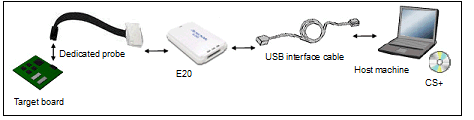 Connect a host machine and E20. If required, connect a target board, too.