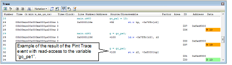 If the conditions for a Point Trace event that you have set are met while the program is executing, that information is collected as trace data.