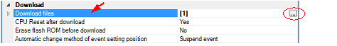 The Download Files dialog box is opened by clicking the [...] button that appears at the right edge in the column of the [Download files] property when you select it in the [Download] category on the [Download File Settings] tab of the Property panel.