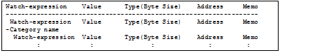 Note that for watch-expressions that can be displayed expanded, such as arrays, pointer type variables, structures/unions, and CPU registers (only those with the part name), the behavior differs depending on whether the watch-expression is saved with [Save Watch Data As...] or [Save Expanded Watch Data…].
