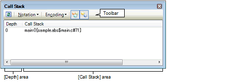 For details on the contents and function in each area, see the section for the Call Stack panel.