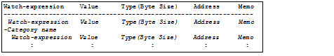 Note that for watch-expressions that can be displayed expanded, such as arrays, pointer type variables, structures/unions, and CPU registers (only those with the part name), the behavior differs depending on whether the watch-expression is saved with [Save Watch Data As...] or [Save Expanded Watch Data…].