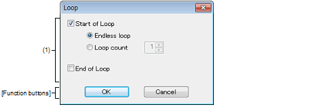 This dialog box is used to perform detailed settings (loop start/stop and loop count) related to the loop information in the Signal Data Editor window.