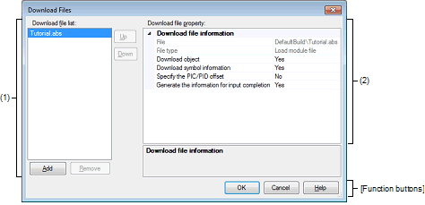 If any file as the subject to build in the project is selected in the [Download file list] area, or while the program is under execution, the [...] button is not displayed. |