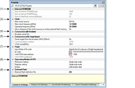 Property Panel: [Connect Settings] Tab [E1(JTAG)]