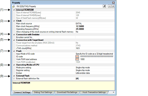 Property Panel: [Connect Settings] Tab [E20(JTAG)]