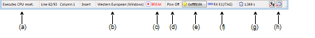 Displays status information on the currently focused panel (e.g., information about caret position or overwrite/insertion mode).