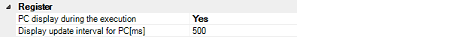 Note that if you've changed the specified value of the [PC display during the execution] property from [No] to [Yes], the previous set value is displayed in this property.