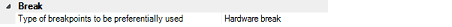 Specify from the following drop-down list the type of preferential breakpoint to be used with a single click of the mouse in the Editor panel/Disassemble panel.