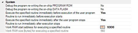 Specify the address to be executed immediately before the user program execution. This property is displayed only when [Execute the specified routine immediately before execution of the user program] property is set to [Yes].