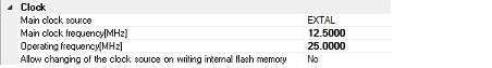 Select EXTAL frequency or internal HOCO as the main clock source. [EXTAL] will be displayed for microcontrollers with no internal HOCO.