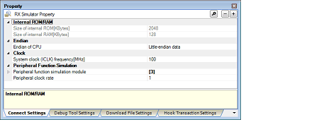 Configure the operating environment on the Property panel below when using Simulator.