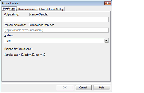 For the basic input format that can be specified as variable expressions and the values output by Printf event, see "Table A.14 Relationship between Variable Expressions and Output Value (Printf Event)".
