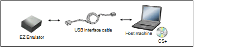 Connect a host machine and EZ Emulator. If required, connect a target board, too.