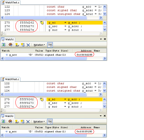 When the load module is downloaded after the values of [PIC Offset] and [PID Offset] have been changed, the allocation of addresses for the P section and external or static variables is changed as shown in the figure below.