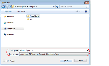 [File name]: Specify the name of a file to be saved (the file extension must be "csv").