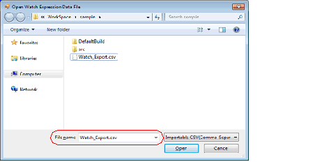 On the Open Watch Expression Data File dialog box that is automatically opened, specify the exported file, and then click the [Open] button.