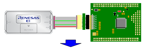 Connecting E1 to RH850/F1L(176pin) board. |