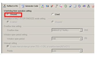 Double-click the [Watchdog Timer] from [Code Generator (Design Tool)] in the Project Tree. This opens the panel for the watchdog timer.