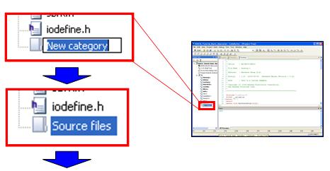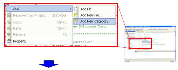 From the project tree, right click a file, then select [Add] → [Add New Category]. |