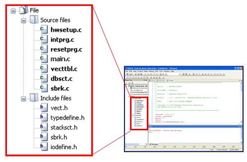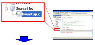 Drag [hwsetup.c], and drop it onto [Source Files]. [hwsetup.c] is now categorized as [Source Files]. |