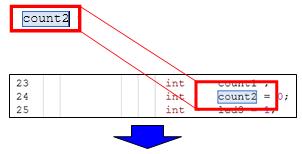 Select the variable "count2" in the source code.