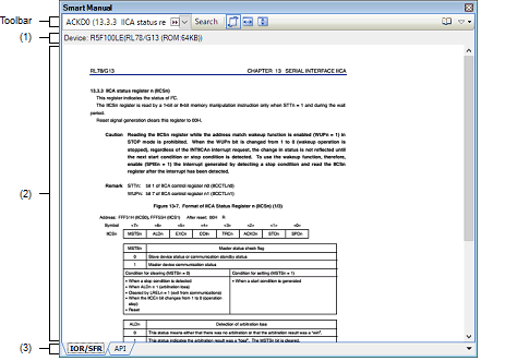 This area shows the target device that includes the register or API displayed in the manual area.