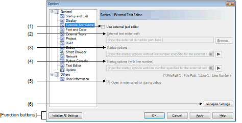 Figure A.44 | Option Dialog Box ([General - External Text Editor] Category) |