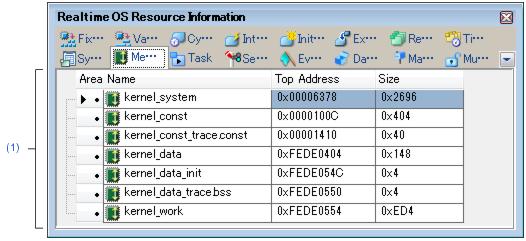 Remark Double-clicking a memory area information cell (e.g., Area Name or Top Address) displays the contents of the target memory area in the Memory panel and moves the caret to the relevant location.