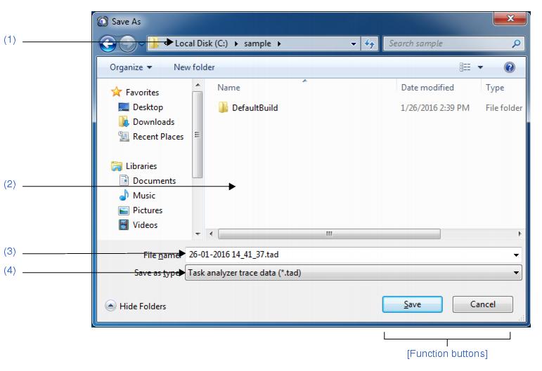 Selects "Task analyzer trace data (*.tad)" as the type of files to be saved.