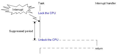 iloc_cpu is issued until this service call is issued, the RI78V4 delays transition to the relevant interrupt processing (interrupt handler) until this service call is issued.