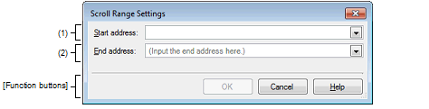 After setting a scroll range via this dialog box, the scroll range is not updated automatically even if the address evaluated by the address expression is changed because of such as a line assembly.