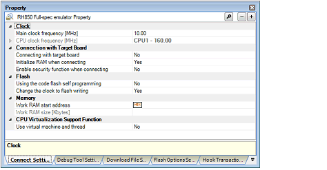 Configure the operating environment on the Property panel below when using Full-spec emulator.