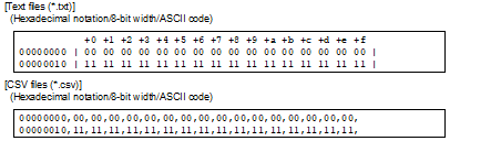 The Data Save dialog box can be opened by selecting the [File] menu >> [Save Memory Data As...] (when this operation is taken place with range selection on the panel, the memory data only in the selected range is saved).