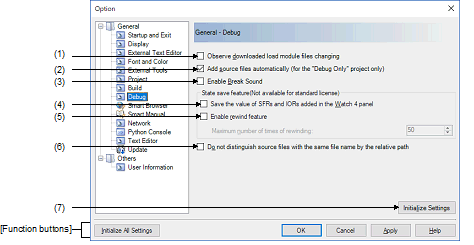 Figure A.51 | Option Dialog Box ([General - Debug] Category) |
