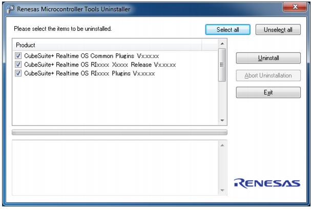Caution If all products are uninstalled, the CS+ Uninstaller will be also uninstalled automatically.