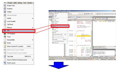 In this section, you observe the value of the register that implements peripheral functions built in the microcontroller. First, let's make the panel float so that it is easier to view.