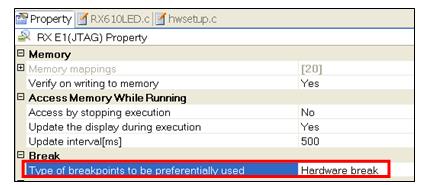 You can select breakpoints by [Type of breakpoints to be preferentially used] in [Debug Tool Settings]tab of the Debug Tool Property.