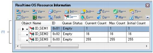 - From the [View] menu, select [Realtime OS] >> [Resource Information].