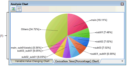 From the [View] menu, select [Program Analyzer] >> [Analysis Chart], and then select the [Execution Time(Percentage) Chart] tab.