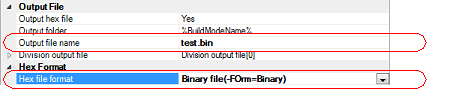 Select the build tool node on the project tree and select the [Hex Output Options] tab on the Property panel.