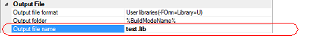 You can also change the option in the same way with the [Output file name] property in the [Frequently Used Options(for Create Library)] category on the [Common Options] tab. |