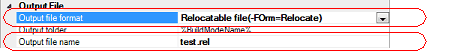 You can also change the option in the same way with the [Output file name] property in the [Frequently Used Options(for Hex Output)] category on the [Common Options] tab. |