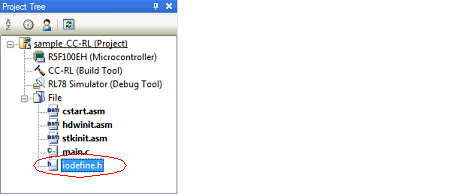 The I/O header file is automatically generated as "iodefine.h" when an application project is newly created and it is registered in the project tree.